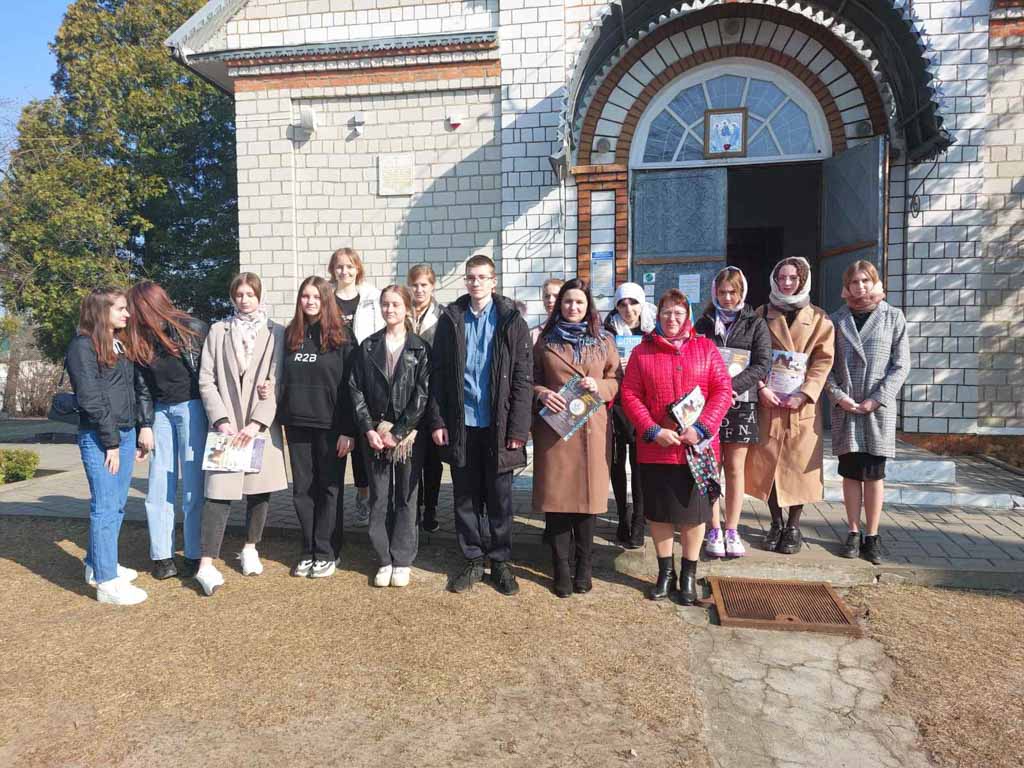 Далее маршрут экскурсий вел непосредственно в храм Святой Живоначальной Троицы, где Людмила Георгиевна рассказала ребятам об истории возникновения современной храмовой постройки, которой в этом году исполняется 30 лет. Ребята узнали о жизни покойного протоиерея Михаила (Мандрика), пастырскими трудами которого Православная жизнь на Лоевщине получила свое новое становление. Некоторые из участников экскурсии смогли впервые познакомиться с внутренним убранством православного храма. Людмила Георгиевна рассказала об истории появления в храме некоторых икон: Пресвятой Троицы, икон Божией Матери “Отрада и утешения”, Киево-Братская, иконы св. вмч. Параскевы. Параллельно со знакомством с иконами, ребята слушали повествование о православных праздниках и традициях, свойственных Лоевской земле: Десятуха (день памяти явления иконы св. вмч. Параскевы), день памяти сщмч. Иоанна Пашина.