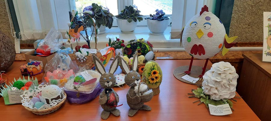 В этом году выставка творческих работ участников конкурса «Пасхальный сувенир», организованная на базе ГУК «Лоевская центральная районная библиотека», радовала разнообразием творческих замыслов, ведь каждая работа поистине несла в себе Пасхальную радость. На выставке можно было увидеть вышивку, открытки, отражающие пасхальную тематику, пасхальные яйца, семейные фото, раскрывающие пасхальные семейные традиции.