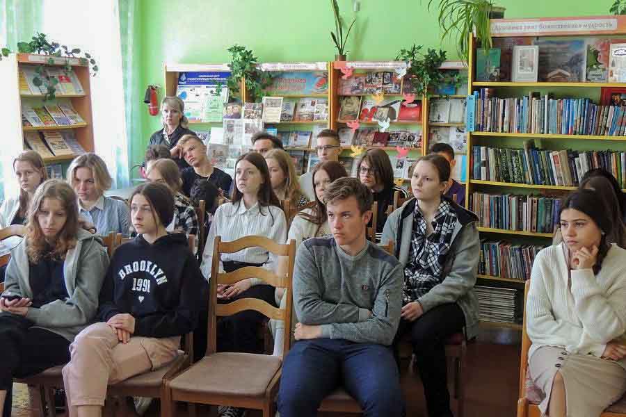 16.05.2022 г. в библиотеке-филиале №14 (Жемчужная,30) ко Дню Победы состоялась духовно-нравственная беседа «Да, мы живём, не забывая…» для учащихся 10 класса ГУО «Средней школы № 15 г. Гомеля» с участием преподавателя воскресной школы прихода храма святого благоверного князя Александра Невского в г.Гомеле Игнатович И.В.