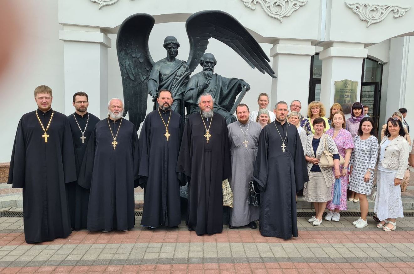 По благословению Высокопреосвященнейшего Стефана, архиепископа Гомельского и Жлобинского, 18 июня 2022 года делегация от Гомельской епархии в составе председателя отдела религиозного образования и катехизации протоиерея Артемия Кривицкого, методиста ОРОиК Хомец С.А., преподавателей воскресных школ и настоятелей приходов храмов приняла участие в Республиканском семинаре-совещании педагогов и руководителей воскресных школ, который прошел в г.Минске под председательством Высокопреосвященнейшего Вениамина, митрополита Минского и Заславского, Патриаршего Экзарха всея Беларуси.