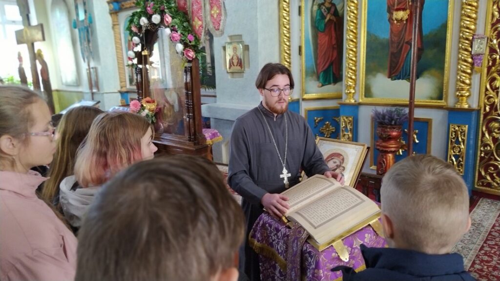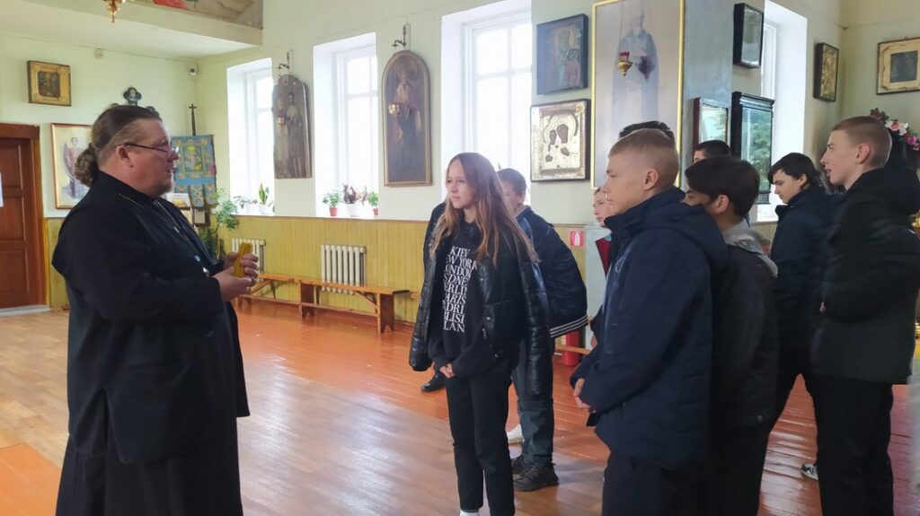 Урок географии на тему “Религии мира” состоялся в храме святителя Николая Чудотворца в г. Добруше. Ученики 8А класса ГУО “СШ №1 г. Добруша” из уст православного священника узнали об отличиях Православия от Католичества. Иерей Андрей Швец, помощник благочинного по религиозному образованию, рассказал о том, что у католиков в таинстве Причастия присутствует только лишь Тело Христово. Что имеются существенные отличия в богословском понимании Святого Духа. Немного коснулись других вероисповеданий. Познакомились с устройством православного храма, поближе рассмотрели богослужебное Евангелие, принесенное из алтаря. Священнослужитель ответил на вопросы, которые сформулировала учитель географии, замдиректора школы по УВР – Осадчая Т.Г.