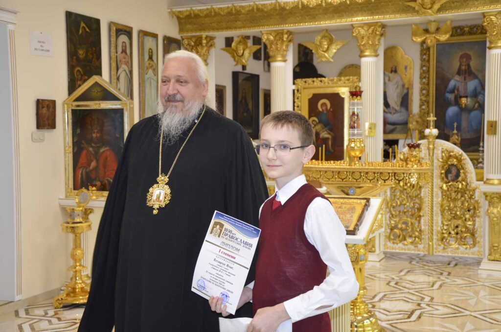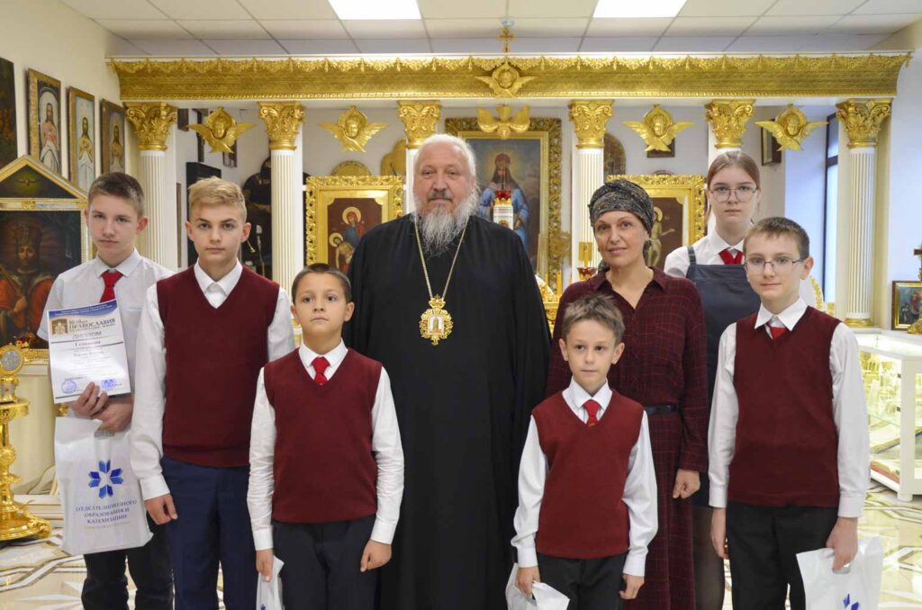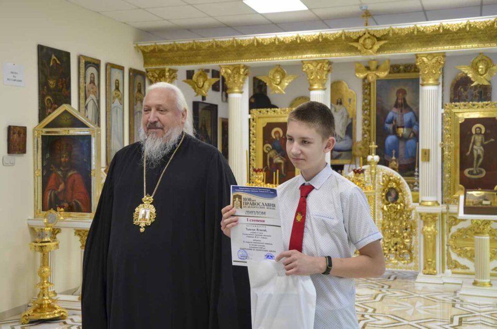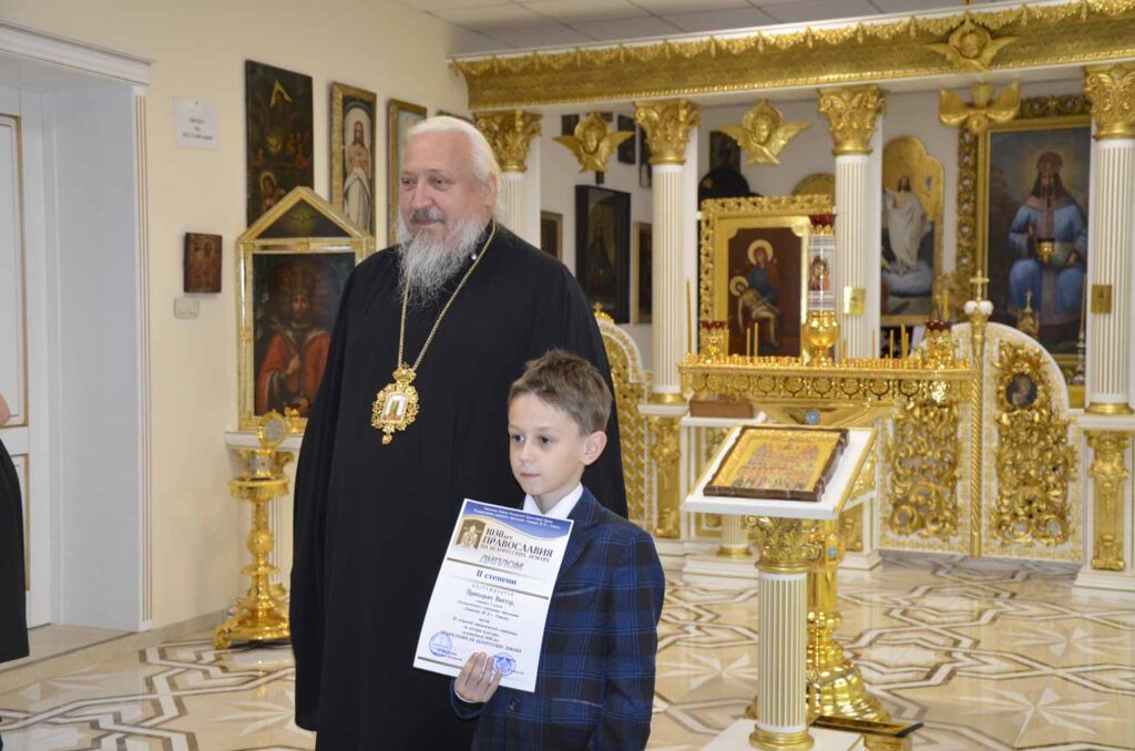 В торжественной обстановке в домовом храме архиепископ Стефан наградил участников олимпиады дипломами и ценными подарками.