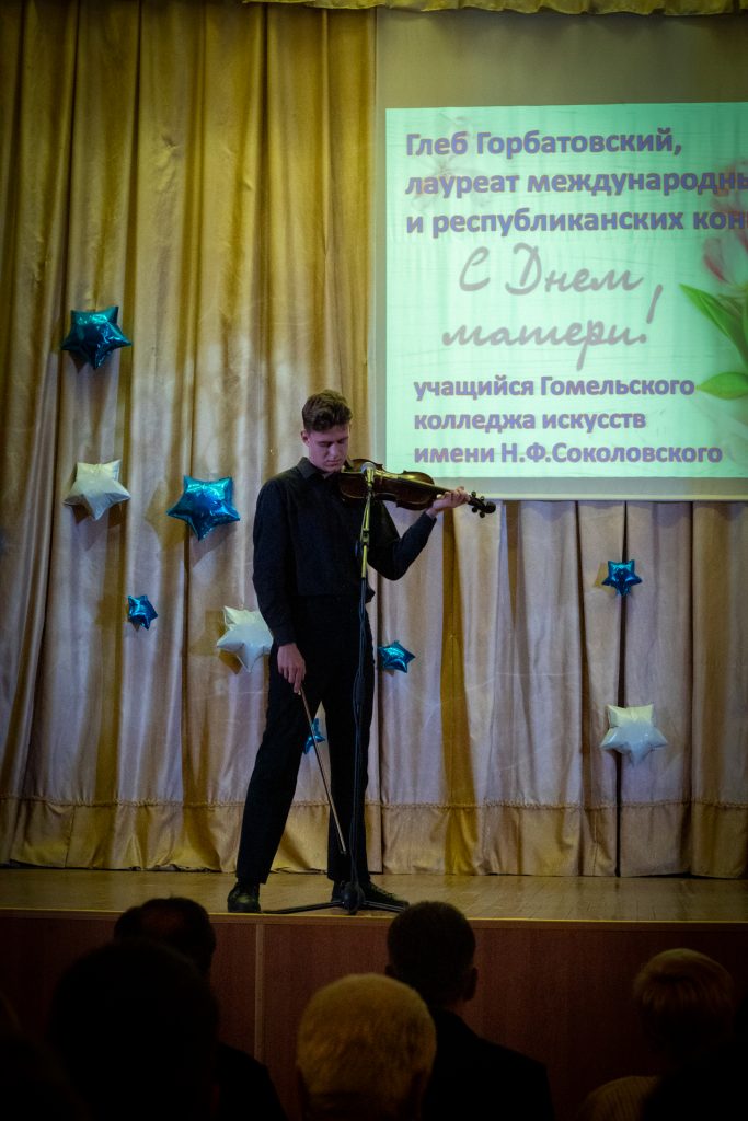 В ходе мероприятия звучали песни и стихи о маме, демонстрировались видеоролики. Душевная музыка, мастерство исполнителя-скрипача, лауреата международных и республиканских конкурсов Глеба Горбатовского вызвали овации в зале.