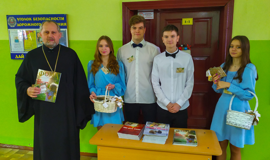 Победителей епархиального тура конкурса «Красота Божьего мира» Степовую Дарью, учащуюся средней школы №10, и Сидорову Илону, воспитанницу Жлобинского городского центра творчества детей и молодёжи «Эврика», поздравил помощник благочинного церквей Жлобинского округа по работе с молодёжью иерей Сергий Плетежов. Все участники бала получили благодарственные письма. Вручили их заместитель начальника отдела образования Марина Алексеевна Логвиненко и директор гимназии № 8 Светлана Петровна Дашковская.