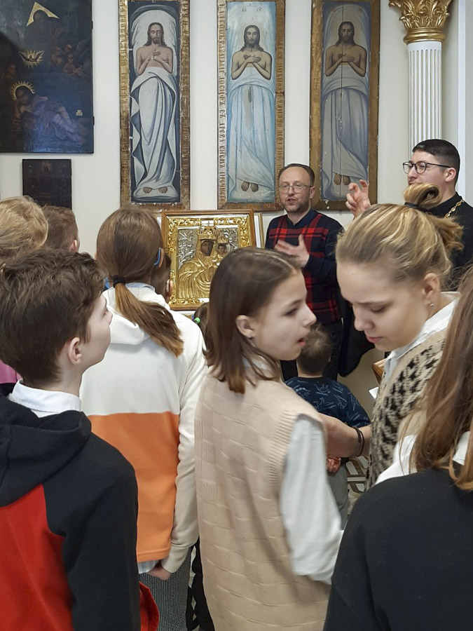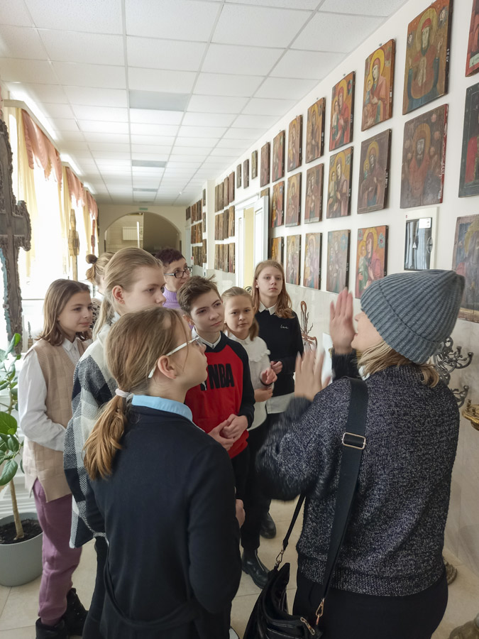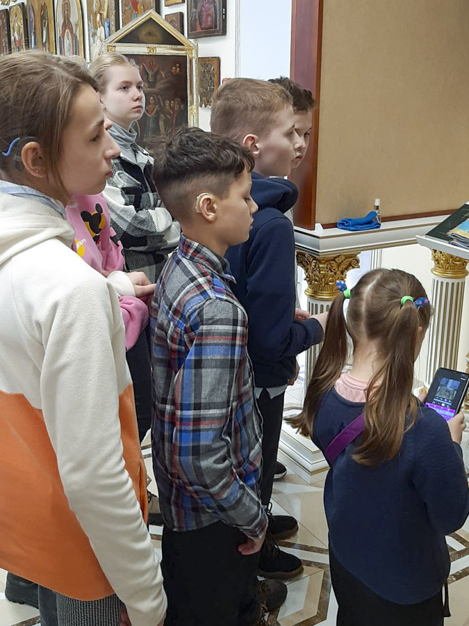 6 февраля учащиеся ГУО “Специальная школа № 70 г. Гомеля для учащихся с нарушением слуха” и клирик прихода храма иконы Божией Матери «Скоропослушница» иерей Александр Пранкевич посетили домовой храм-музей в честь Собора всех Белорусских святых при Гомельском епархиальном управлении.