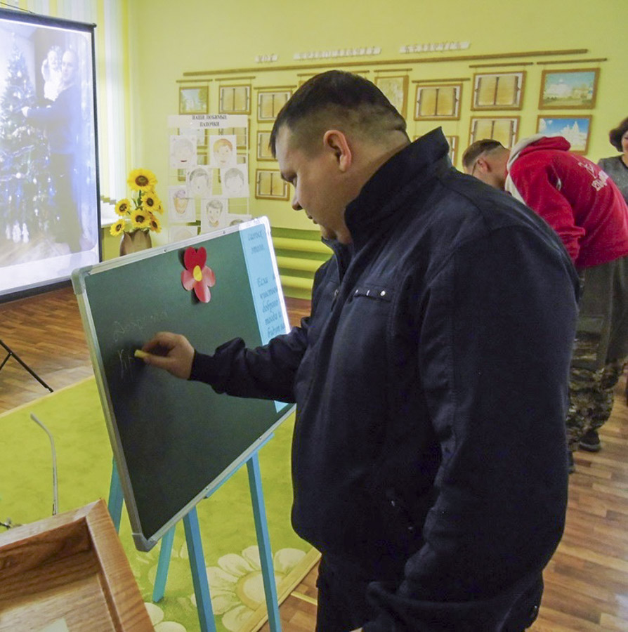 А ещё папы приняли участие в творческих заданиях, заполнили тест «Я и мой ребёнок» и постарались найти свой портрет на выставке «Наши любимые папочки», подготовленной их сыночками и доченьками.