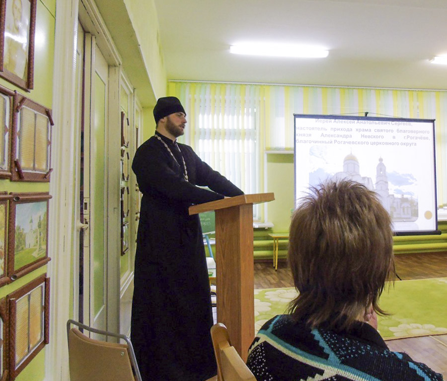 Продолжил разговор о духовном воспитании в семье настоятель прихода храма святого благоверного князя Александра Невского в г.Рогачеве иерей Алексей Сергеев. Священник подчеркнул, как важно передавать детям те ценности воспитания, которые переходили от одного поколения наших предков к другому: любовь к Богу, к ближнему, трудолюбие, умение ценить то, что имеешь, и мудро распоряжаться этим. Сказал о важности детям видеть, что родители любят и уважают друг друга. А родителям – рассуждать, что они после себя оставят. И тогда, возрастив своих детей как дорогие сосуды, мы будем уверены в добром воспитании внуков.