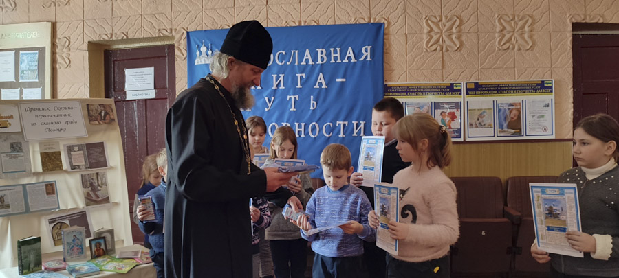 Мероприятие для учащихся Кошарской начальной школы называлось «Православная книга – путь к духовности». Его провели 9 марта настоятель прихода храма Святого Духа в аг.Дворец протоиерей Владимир Янчесов и заведующая сельской библиотекой Белян Наталья Васильевна.