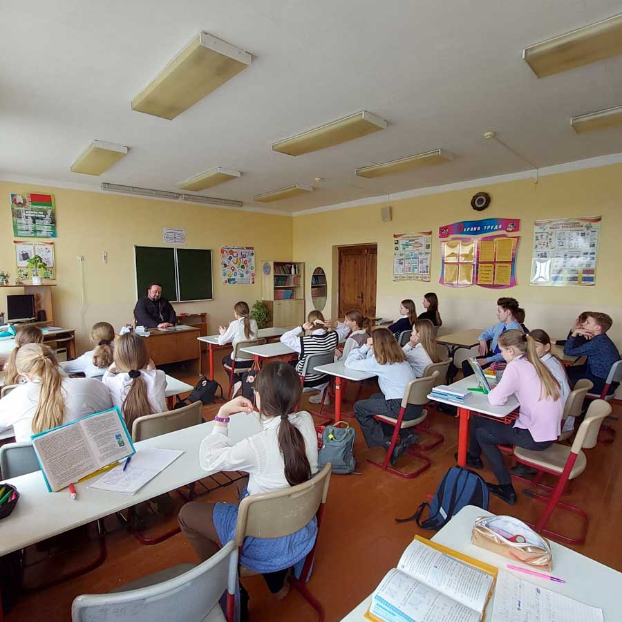 20 и 21 марта клирик прихода храма святого благоверного князя Александра Невского в г.Рогачеве иерей Дионисий Фенюк встретился со школьниками – учащимися 6 класса средней школы №2 и 5 класса средней школы №6.