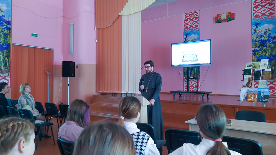 Иерей Алексей Рыкалин, настоятель храма св. блгв. кн. Олега Брянского в г. Добруше, в ГУО СШ №2 провел видеолекторий на тему «Святое Евангелие. Библейские заповеди». Ребята пополнили свои знания относительно самой важной книги в жизни каждого человека.