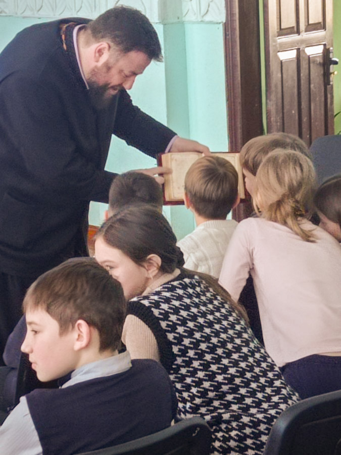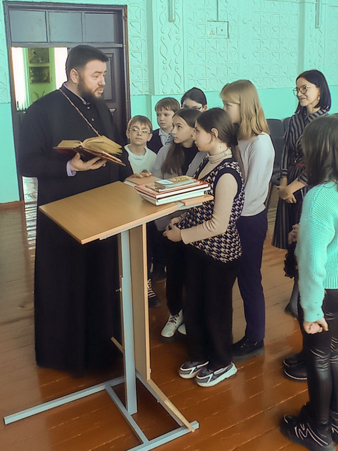 Выступая перед ребятами, священнослужитель отметил: «День православной книги – особенный день, когда в далеком XVI веке выходит первая в России печатная книга диакона Ивана Федорова «Апостол». Эта богослужебная книга, которой мы до сих пор пользуемся во всех храмах Русской Православной Церкви».