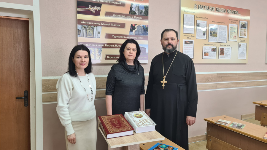 31 марта 2023 в рамках мероприятий, посвященных Дню православной книги, по благословению архиепископа Гомельского и Жлобинского Стефана председатель отдела религиозного образования и катехизации Гомельской епархии протоиерей Артемий Кривицкий передал комплект книг духовно-нравственного содержания для пополнения книжного фонда кабинета по основам православной культуры.