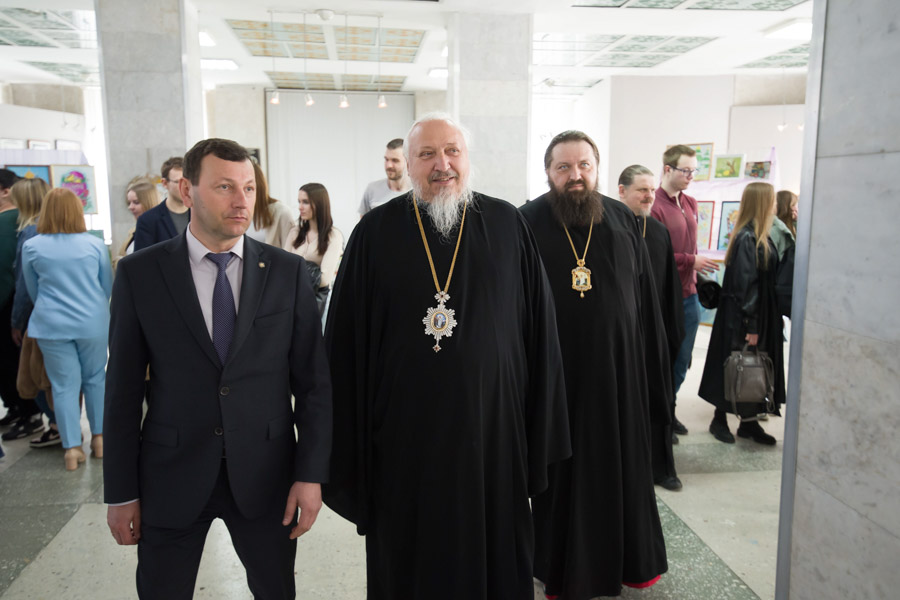 В открытии фотовыставки приняли участие Высокопреосвященнейший Стефан, архиепископ Гомельский и Жлобинский, Преосвященнейший Амвросий, епископ Светлогорский, викарий Гомельской епархии, председатель отдела религиозного образования и катехизации Гомельской епархии протоиерей Артемий Кривицкий, настоятель прихода храма в честь иконы Божией Матери «Всех скорбящих Радость» в г. Гомеле протоиерей Вадим Кочан, первый проректор УО «Гомельский государственный университет имени Франциска Скорины» Крук А.В., студенты университета и представители Гомельской епархии.