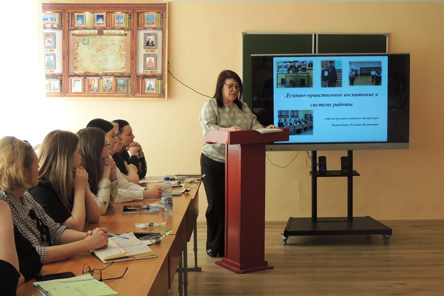 Учитель начальных классов ГУО «Средняя школа №41 г. Гомеля» Жлобич Н.Е. представила доклад «Христианское воспитание как основа личностного становления ребенка». Своей системой духовно-нравственного воспитания школьников на уроках русского языка и литературы поделилась Бердычевец Т.В.