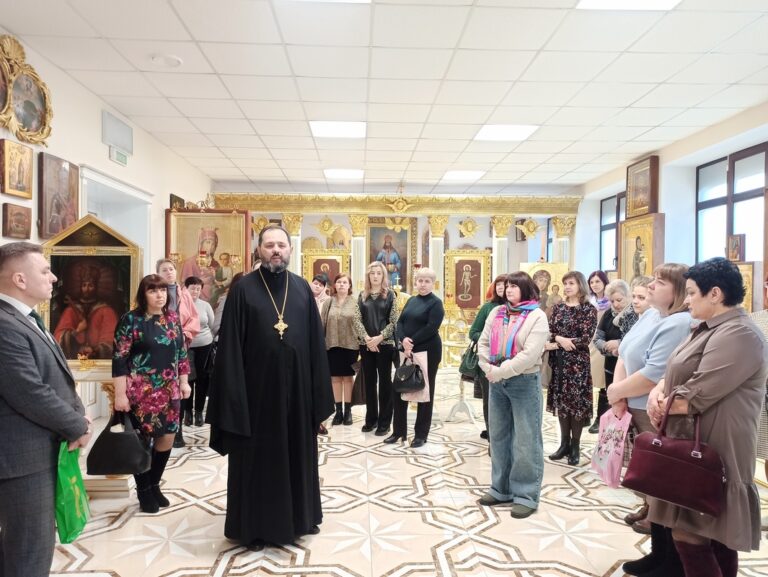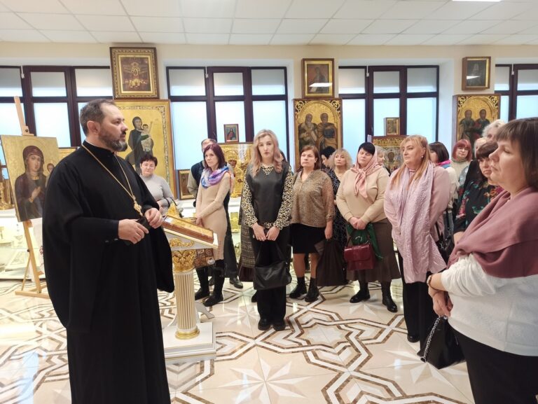 Начался семинар в домовом храме-музее в честь Собора всех Белорусских Святых при Гомельской епархии, где председатель отдела религиозного образования и катехизации протоиерей Артемий Кривицкий рассказал педагогам о святынях храма, об уникальных иконах и коллекции книг, а так же о разнообразных направления экскурсий и мастер-классов разработанных для посетителей храма-музея.