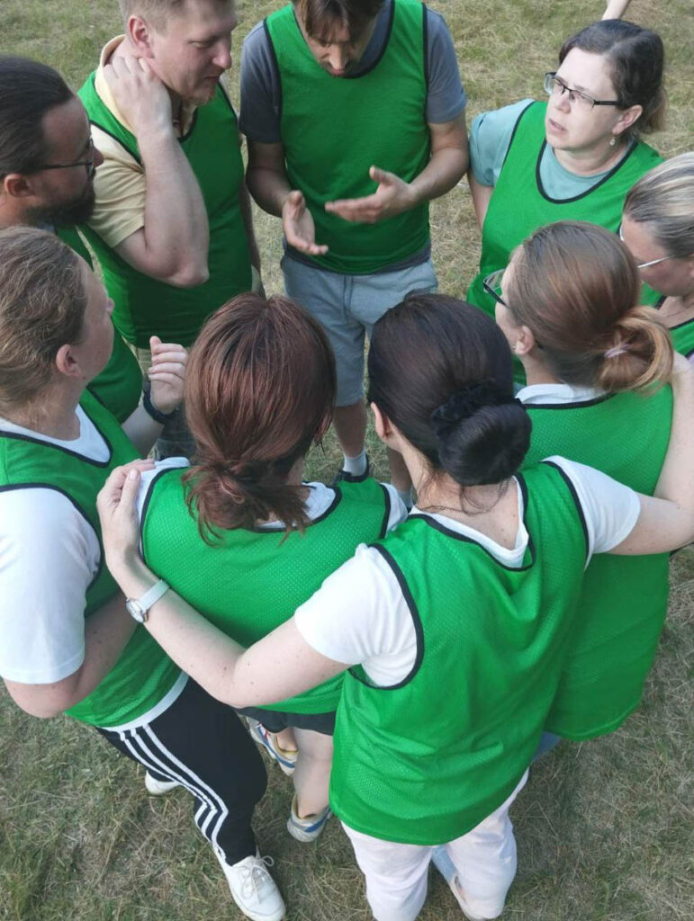 Третий день епархиального семейного слета был посвящен здоровью и спорту. Алексеев Валерий Михайлович, тренер воскресной школы по футболу прихода храма Иверской иконы Божией Матери в г.Бобруйске, провел для детей старинные русские игры лапта и пекарь, для взрослых – фитнес тренировку на природе, а в конце дня команда родителей и команда детей проверили свои силы и выносливость в спартакиаде.