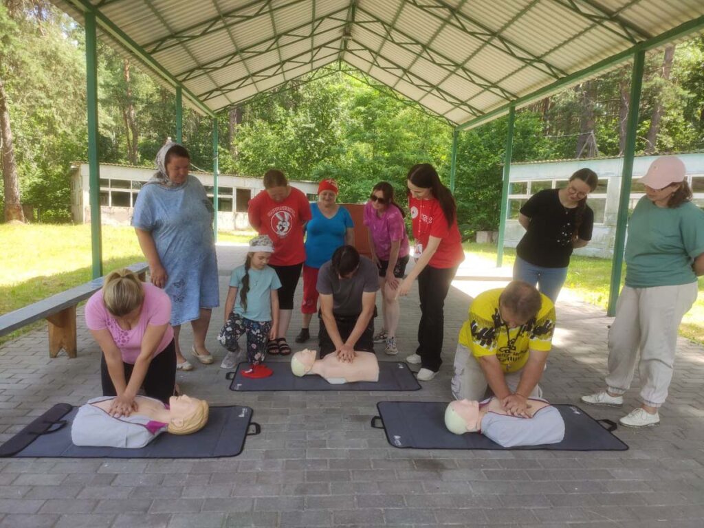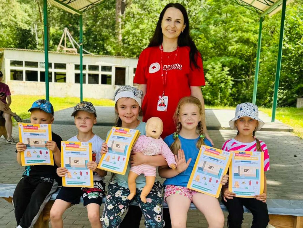 Тренер Гомельской областной организации Белорусский Красный Крест Алина Юшкевич рассказала и показала, как правильно делать сердечно-лёгочную реанимацию взрослым и детям, что предпринять при тепловом и солнечном ударе и при непроходимости дыхательных путей. После теоретической части слушатели приступили к практике — на манекене и симуляторе доводили до автоматизма нужный алгоритм действий. По окончании инструктажа для малышей волонтеры раздали информационные материалы.