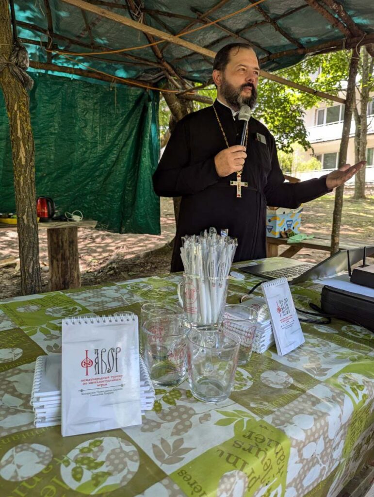 Протоиерей Артемий Кривицкий, председатель отдела религиозного образования и катехизации Гомельской епархии, провел для участников слета интеллектуальную игру в рамках открытого международного турнира по интеллектуальным играм “Фавор”, в рамках которой знатоки смогли проверить знания по основам православной культуры.