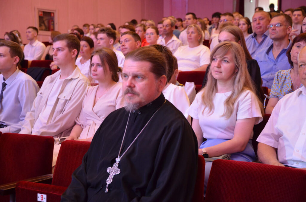28 июня в актовом зале Бел ГУТа состоялось торжественное мероприятие, посвященное «Дню выпускника БелГУТа – БИИЖТа». По благословению архиепископа Гомельского и Жлобинского Стефана в актовом празднике университета принял участие настоятель прихода храма иконы Божией Матери «Всех скорбящих Радость» протоиерей Вадим Кочан.