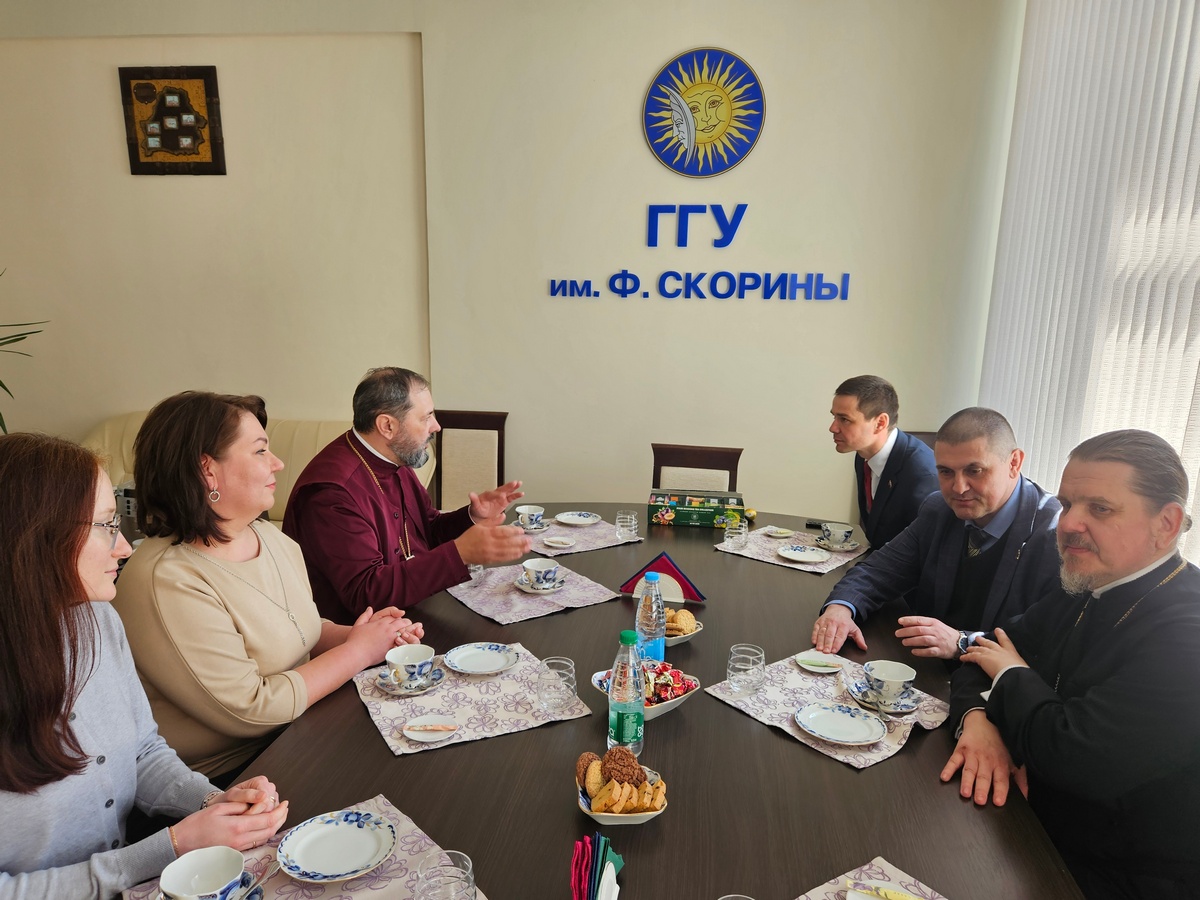 14 апреля 2026 года в Гомельском государственном университете имени Франциска Скорины состоялась рабочая встреча руководства ректората с представителями Гомельской епархии и социально-просветительского учреждения «Центр поддержки семьи, материнства и детства «Покрова».