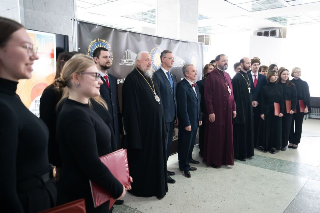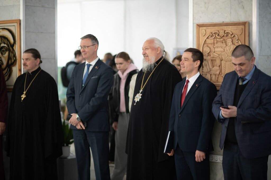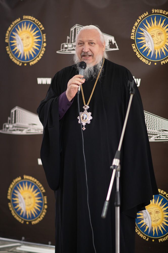 В открытии выставки приняли участие Высокопреосвященнейший Стефан, архиепископ Гомельский и Жлобинский, руководство университета во главе с ректором Сергеем Анатольевичем Хахомовым, представители Гомельской епархии, студенты и гости университета.