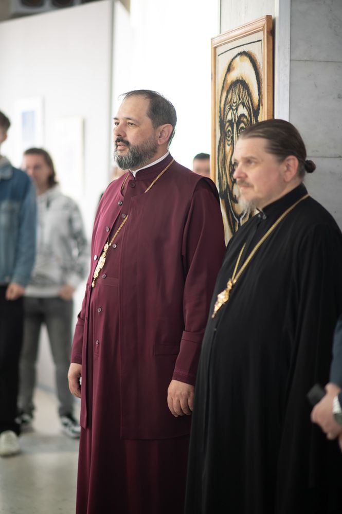 Владыка Стефан приветствовал участников выставки и в своём слове напомнил о событиях Воскресения Христова, а также о божественном обещании блаженства тем, кто, не видев Спасителя, уверовал в Его восстание из мёртвых.